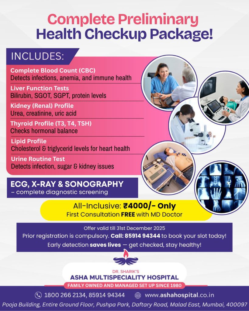 Dr Sharik’s Asha Multi Speciality Hospital, Malad East, Pooja Building, Pushpa Park. (Family Owned And Managed). Complete Ground Floor 4000 Sq Foot.